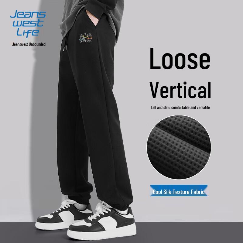 JEANSWEST LIFE Men's Loose Fit Cool Silk Grid Cuffed Joggers