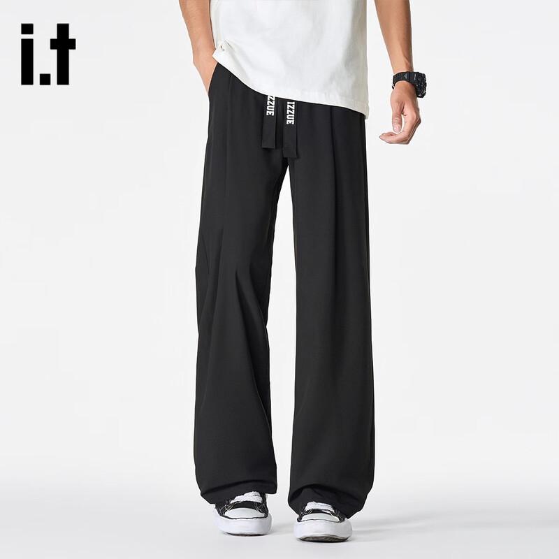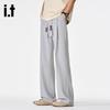 Izzue Men's Ice Silk Cooling Straight Wide-Leg Casual Trousers