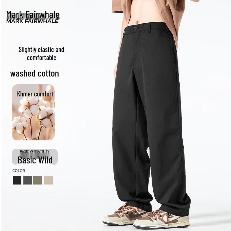 Mark Fairwhale Men's Washed Cotton Straight-Leg Casual Pants