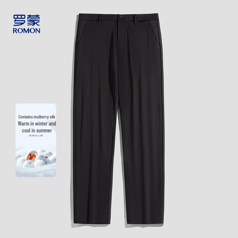Luomeng Men's Ice Silk Silk Blend Straight-Leg Casual Trousers
