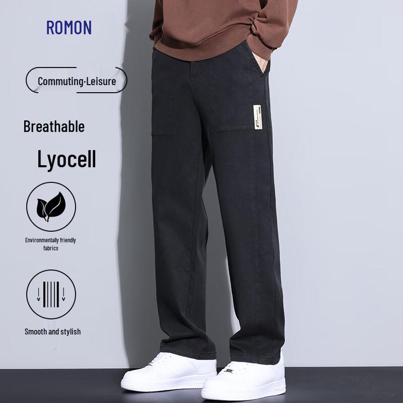 ROMON Men's Tencel Lyocell Business Casual Straight Pants