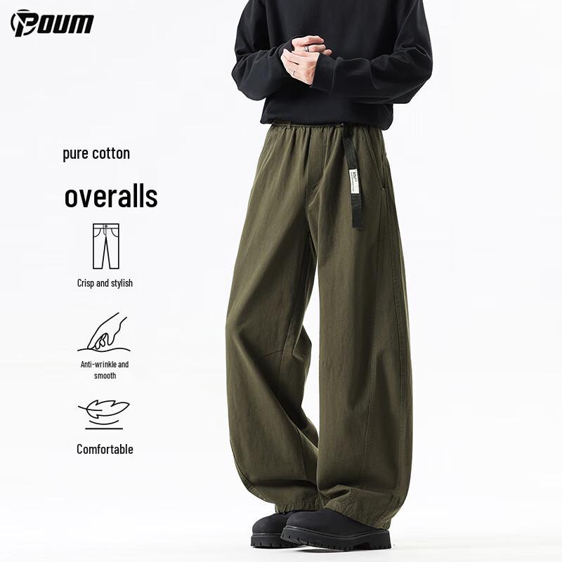 POUM Men's Cotton Wide-Leg Parachute Cargo Pants