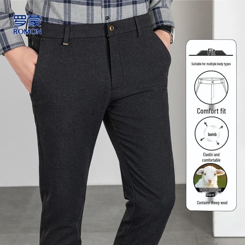 ROMON Men's Wool Blend Twill Straight Leg Business Casual Trousers