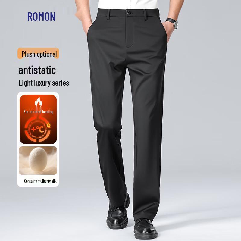 ROMON Men's Silk Blend Fleece-Lined Business Casual Trousers
