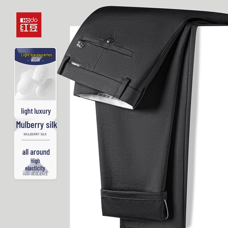 Hodo Men's Autumn Silk Blend Straight-Leg Business Casual Trousers