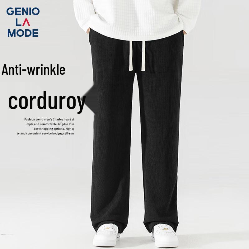 GENIOLAMODE Men's Fleece-Lined Corduroy Straight-Leg Casual Pants