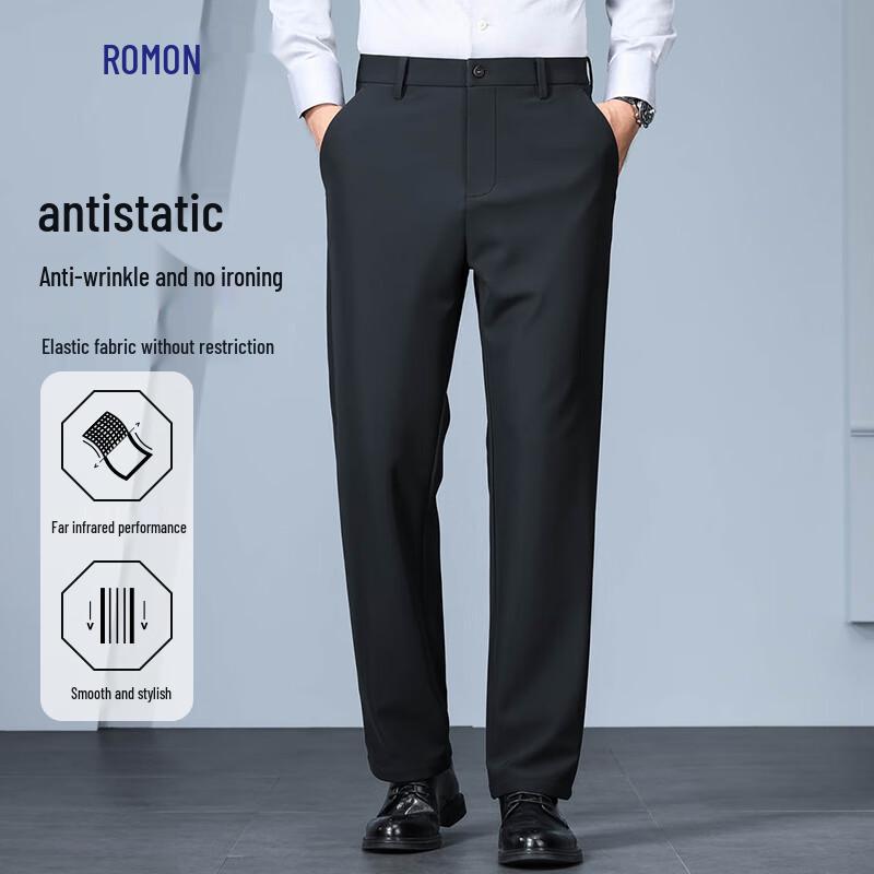 ROMON Men's Thick Anti-Static Business Casual Straight-Leg Pants
