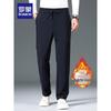 ROMON 2025 Men's Warm Elastic Waist Straight-Leg Business Casual Pants