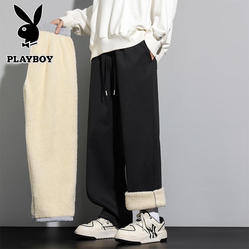 PLAYBOY Men's Thickened Lamb Wool Straight Casual Pants