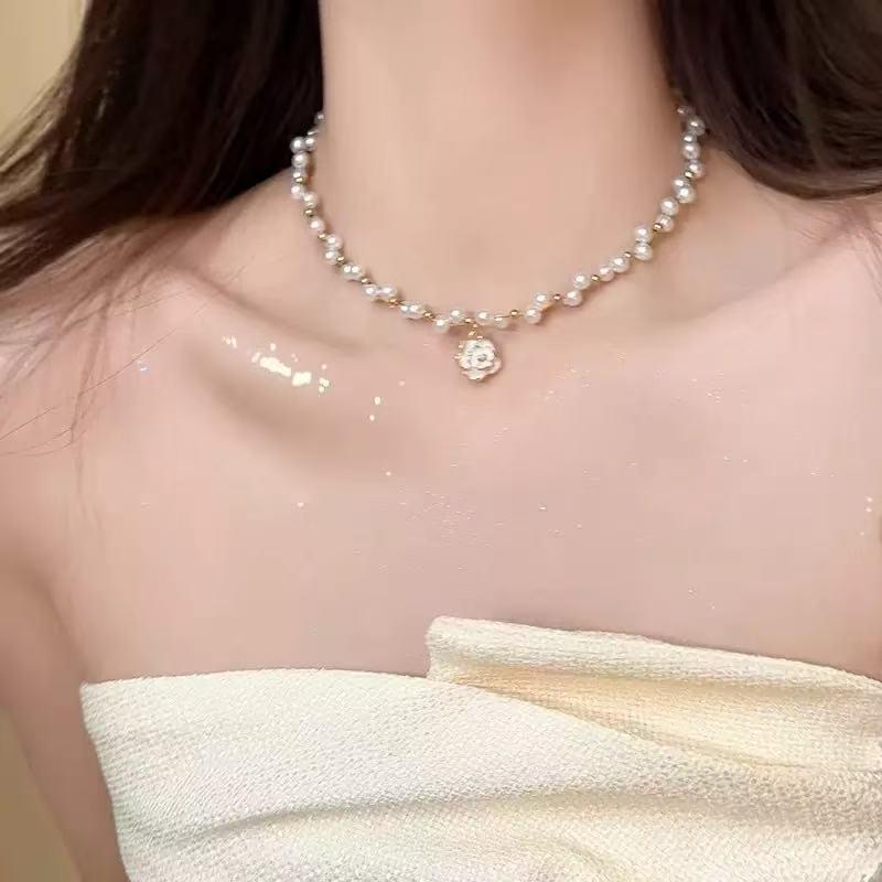 Elegant French Pearl Camellia Necklace: High-End Versatile Women's Choker