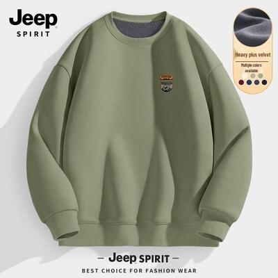 JEEP SPIRIT Men's 2025 Fall/Winter Fleece-Lined Pullover Sweatshirt