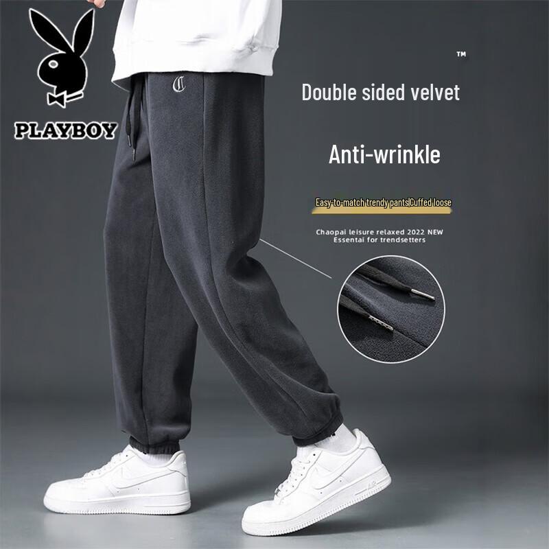 PLAYBOY Men's Double-Sided Fleece Casual Pants