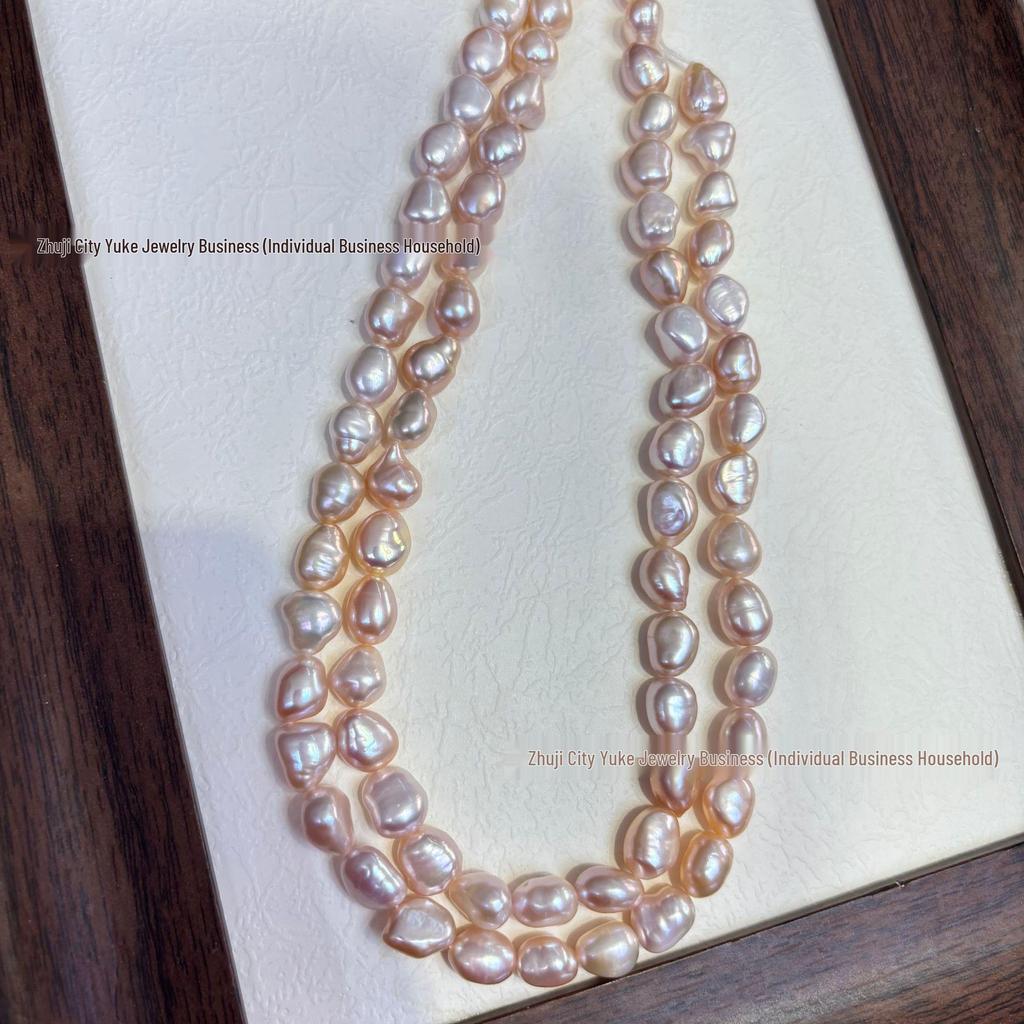 Pale Pink High Luster Freshwater Pearl Necklace, 8-9mm, Vertical Hole, Hand-Strung, Semi-Finished, Two-Sided Luster.