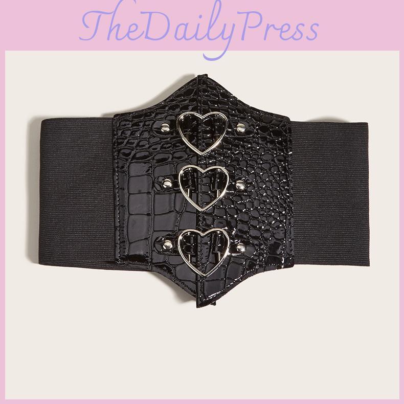 Magnetic Heart Shaped Buckle Waist Belt Elastic Waistband And Leather Synthetic