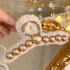 Autumn/Winter 2025 Plush Mink Fur Love Heart Rhinestone Shark Claw Clip for Women