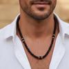 Men's Volcanic Stone Black Agate Hip Hop Necklace - European & American Trendy Handmade Beaded Accessory