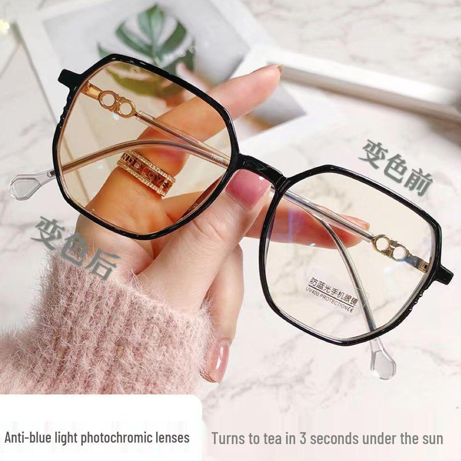 Ultra-Light Photochromic Korean-Style Blue Light Blocking Glasses with Large Frames