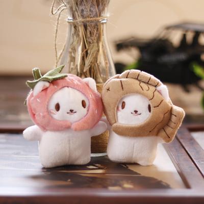 Cat with Fish/Strawberry Head Cover Toy Pendant Bag Key Chain Decor