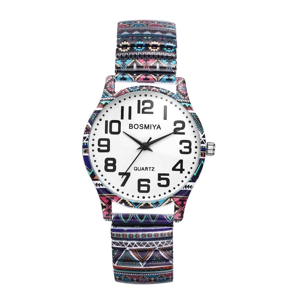 Unisex Watch with Stretchable Floral One Size Fits and Quartz Stainless Arabic Analog Adjustable Cute Perfect for or As a Gift for Your Girlfriend