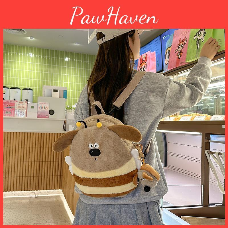 Introducing the Playful Plush Dog Backpack in charming khaki and whitethe perfect accessory for school activities that appeals to children of all ages. Crafted from soft, high-quality plush material, this delightful backpack combines functionality with a whimsical design, making it an ideal choice for kids who love to express their playful side. Its breathable fabric ensures comfort during long school days, while the adorable dog-inspired design adds a touch of fun to any outfit.