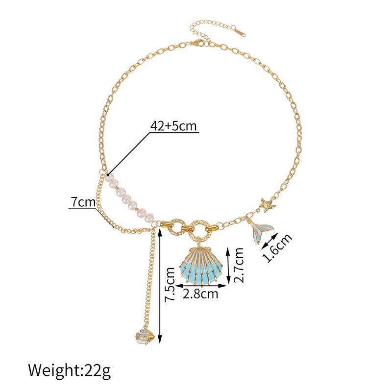 Bohemian Stainless Steel 18k Gold Shell Ocean Series Long Necklace, Fashionable and Versatile Titanium Steel Design