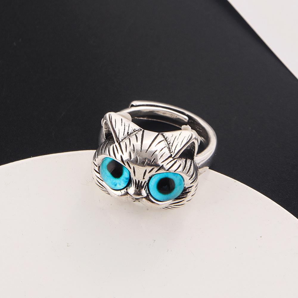 3D Blue-Eyed Fat Cat Couple Rings: Cute Electroplated Alloy Rings for Men and Women.