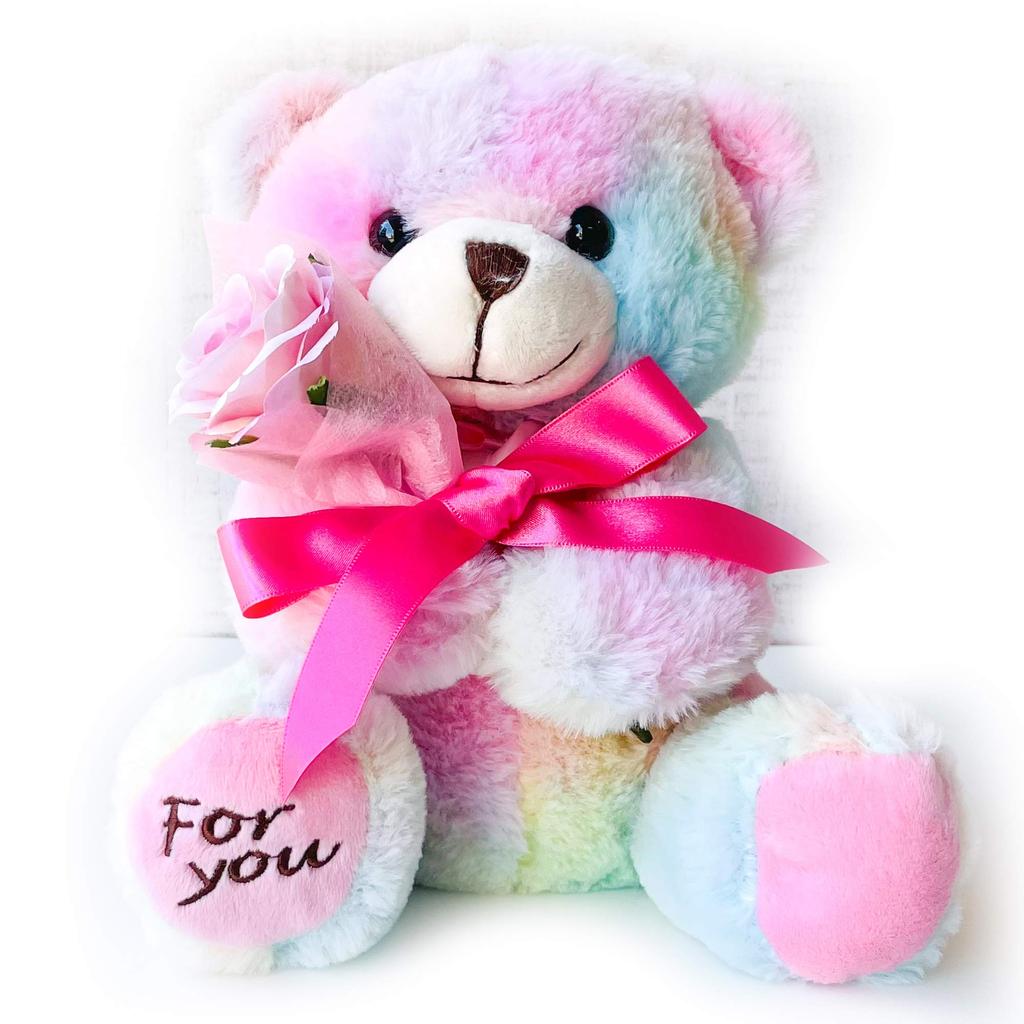 Day Bouquet Bear Plush Toy with Artificial W230 X H250 X Lulu's Valentine's Full-Lille Flowers, Size D200mm, Rainbow, Lulu's-0532
