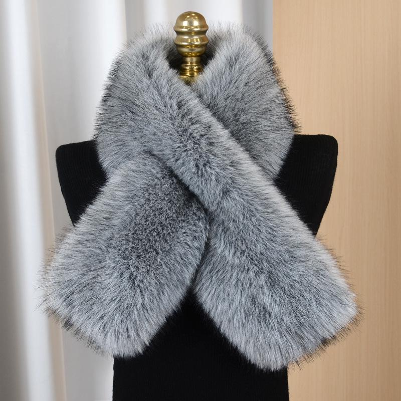 2025 Women's Double-Sided Faux Fox Fur Scarf - Thick, Warm, & Elegant for Autumn/Winter