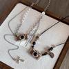 Retro Pearl Camera Necklace: Unique Brown Long Chain for Women's Sweaters