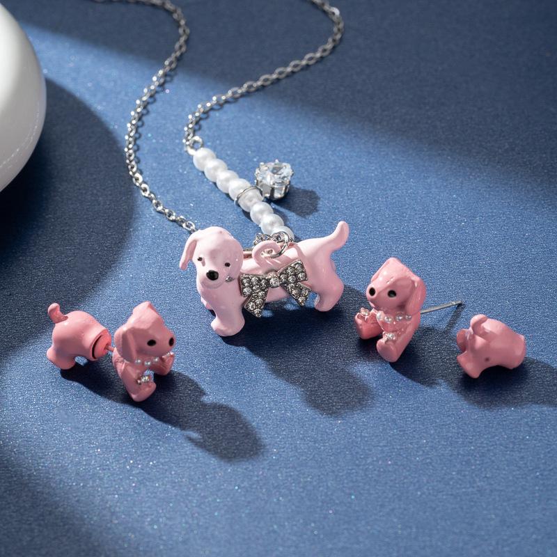 Zhao Lusi-Inspired Pink Dachshund Bow Pendant Necklace - Cute, High-End Fashion Jewelry for Women