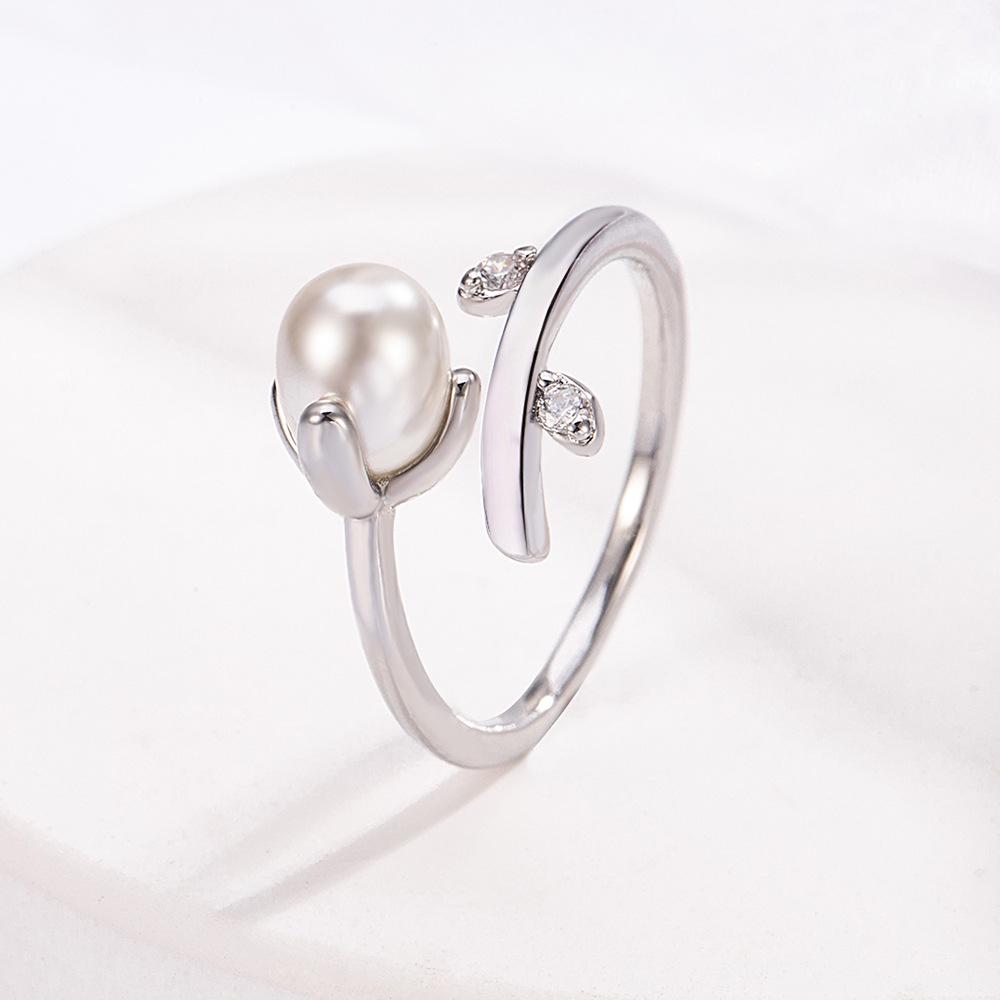 French Minimalist Faux Pearl Twig Ring - Mori Style High-End Open Hand Jewelry