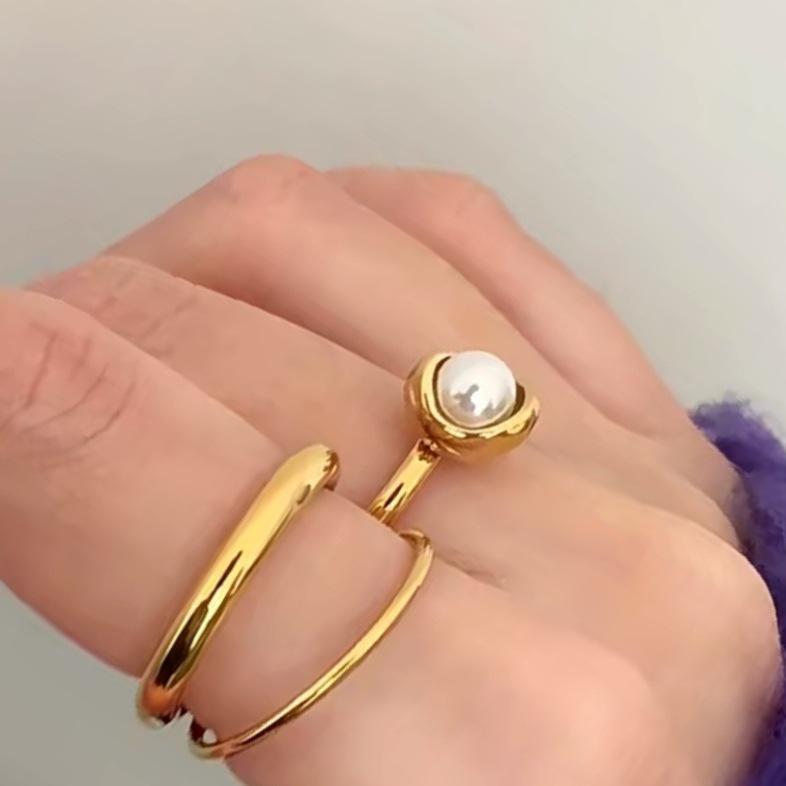 18K Gold-Plated Minimalist Double-Layer Irregular Ring for Women - Trendy European & American Retro Style