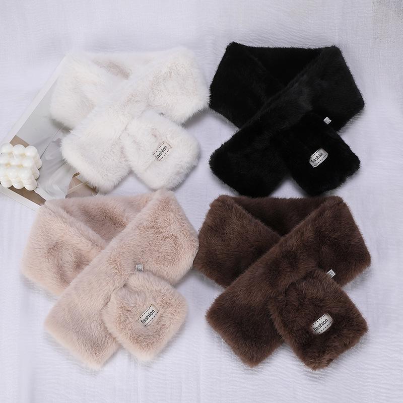 Korean Winter Plush Luxury Cross Fur Scarf for Women