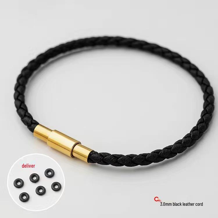2.5mm Gold Bead Woven Leather & Steel Wire Rope Waterproof Red Bracelet, Non-Fading.