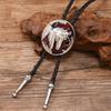 European-American Style Leather Rope Necklace with Drip Oil Horse Head Retro Bolo Tie Sweater Chain - Unisex Design