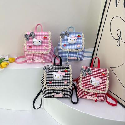Children's Cute Cartoon Cat Red Grid Backpack Little Girl Lace Decorative Schoolbag New School Backpack