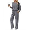 Women's Ribbed Long-sleeved Round-neck Loose And Casual Two-piece Set