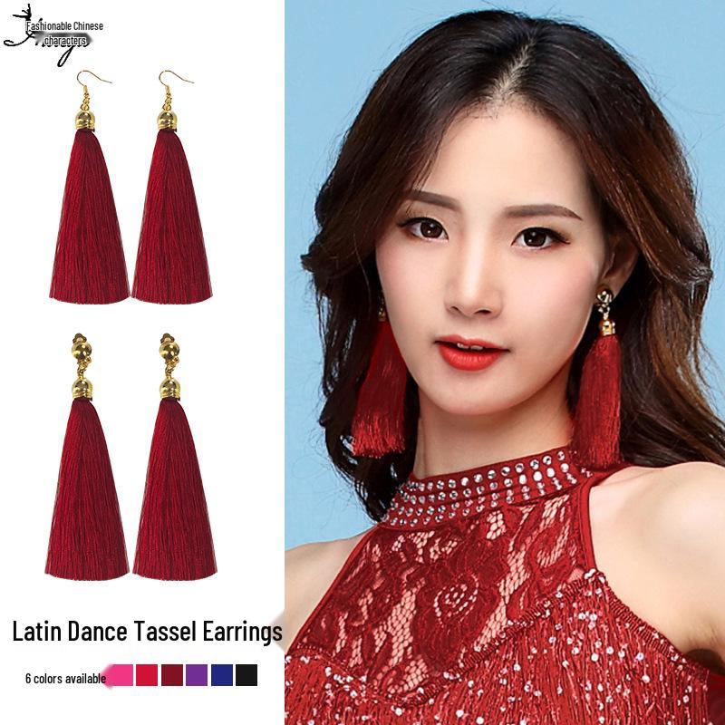 Huayu Dance Earrings: Square, Latin, Belly & Indian Dance Tassel Performance Jewelry