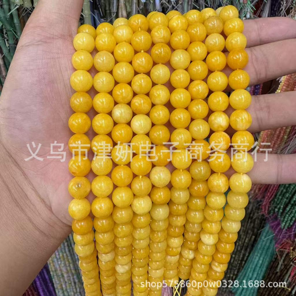 Yellow Chalcedony Amber Jade Round Loose Beads for DIY Jewelry Accessories