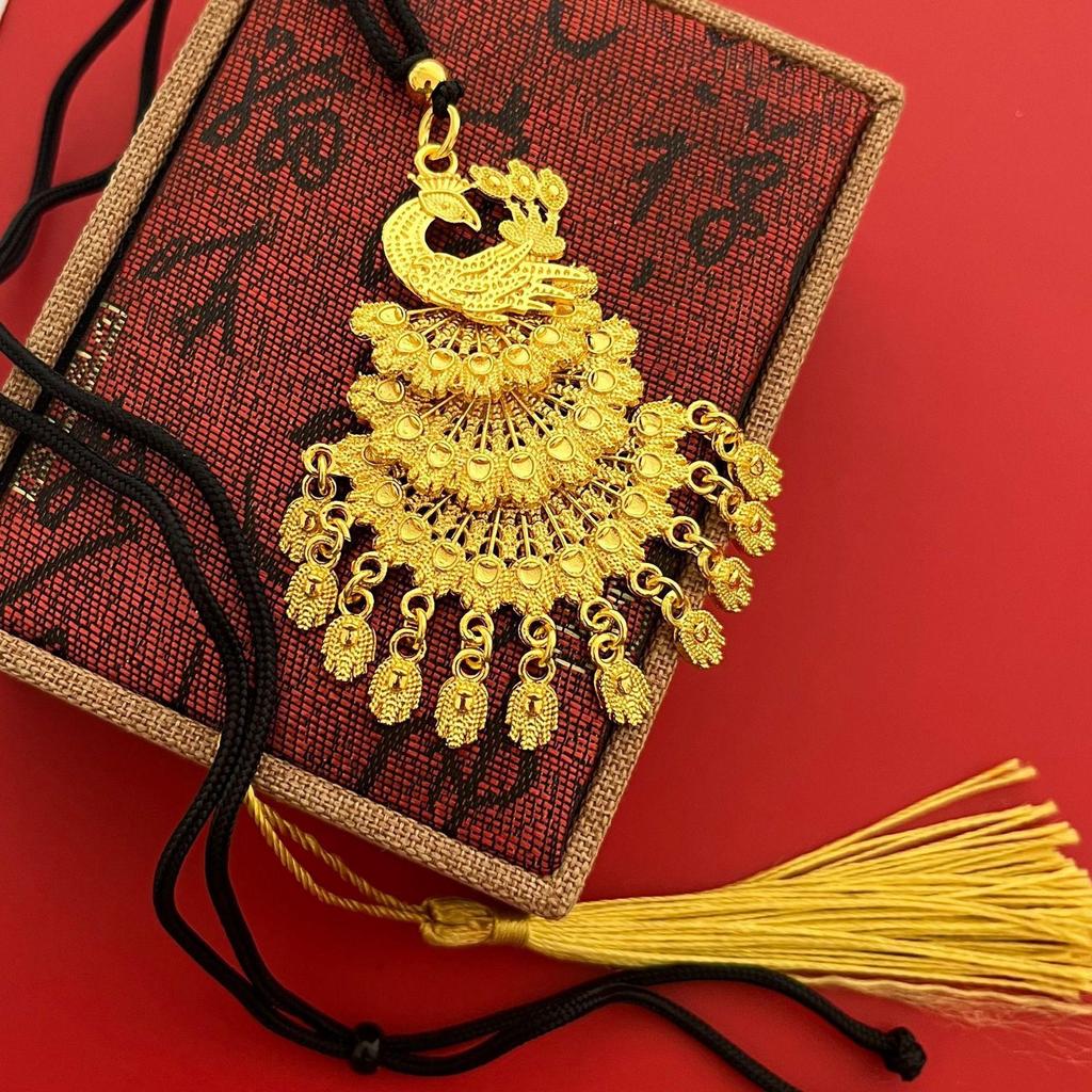 Gold Peacock Tassel Pendant Necklace – Elegant Ethnic Style for Women
