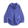 Introducing a stylish and versatile addition to your wardrobe: a women's cotton batwing sleeve shirt perfect for spring. This shirt features a chic European and American design with bold striped patterns, adding a modern touch to any outfit. Crafted from high-quality polyester, it promises comfort and durability. The long sleeves and unique tailored neckline enhance its sophisticated look, making it ideal for both casual outings and more polished occasions.