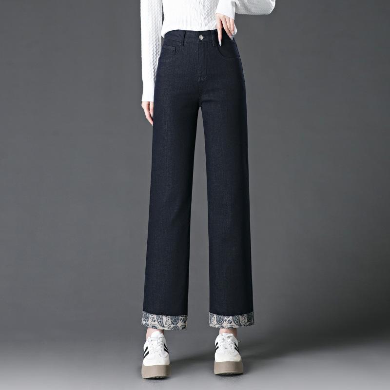 Introducing a must-have addition to your wardrobe for the upcoming season: Women's High Waist Denim Blue Slim Wide-Leg Jeans. Designed with a sportive flair, these jeans feature a stylish high waistline, providing a flattering fit for any body type. The unique draped folded hem adds a touch of sophistication, making them perfect for both casual and semi-formal occasions. Crafted from high-quality polyester, these jeans offer comfort and durability, ensuring they're a staple in your closet for years to come. Perfect for pairing with your favorite tops and sneakers for a chic, relaxed look.