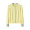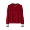 Women's Pure Cashmere Color Block Knit Cardigan - Button-Up, Round Neck, Versatile for Autumn and Winter.