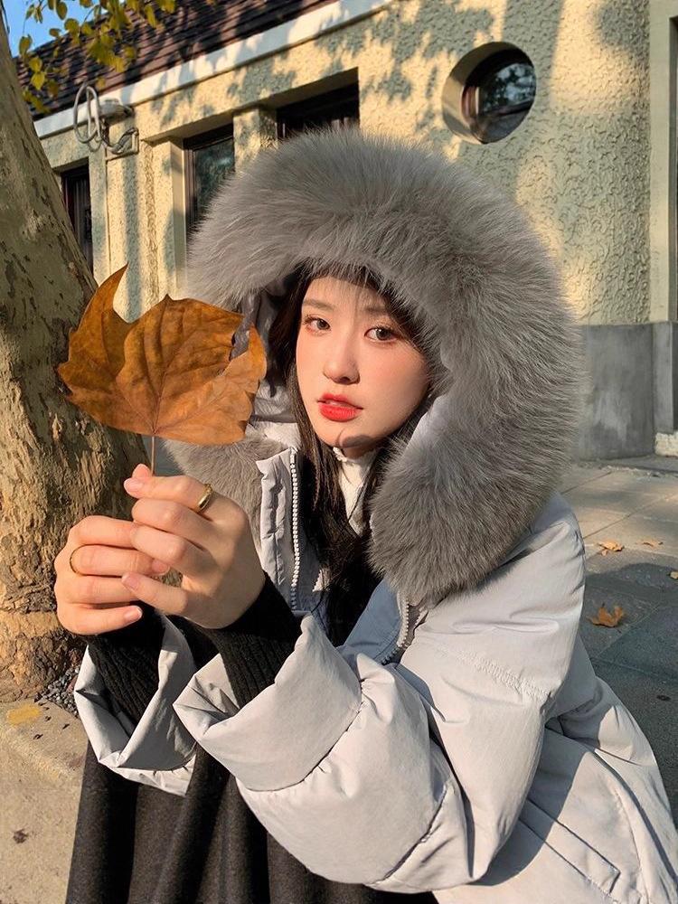 2025 Women's Korean Style Winter Down Jacket: Mid-Length, Hooded, with Large Fur Collar, Loose Fit, Thick and Warm.