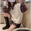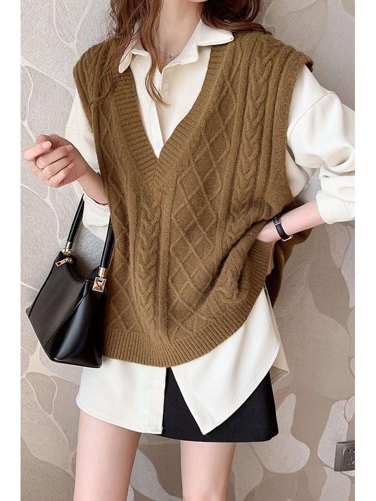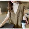 Introducing a versatile and stylish addition to your seasonal wardrobe, this women's loose fit cable knit sweater vest is perfect for autumn and winter. Offering a modern take with its V-neck design, this piece seamlessly combines comfort and sophistication. The vest features a unique turn-down collar and is crafted from high-quality chenille fur material, ensuring warmth and comfort. Enhanced with spandex, it provides flexibility and a flattering silhouette that complements the female form. Embrace the trendy Korean version with this thick OL (Office Lady) style sweater vest, designed to keep you cozy and chic.