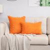 2PCS Boho Chic Corduroy Throw Pillow Cover with Pom-Poms - Soft, Striped Square Cushion Case for Living Room & Bedroom Decor, Perfect for Weddings