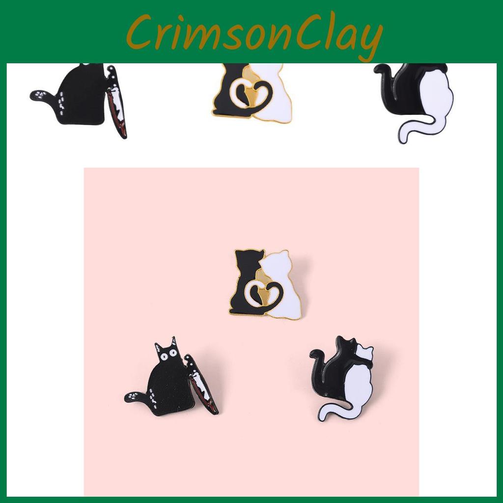 Unique Couple Animal Cat Enamel Lapel Pin Stylish Brooch For Fashionable Cat Lovers