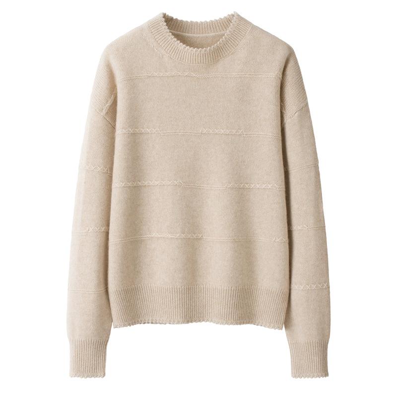 Minimalist Round Neck Tassel Hand-Knitted 2-Ply Cashmere Pullover Sweater