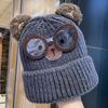 Cute Cartoon Bear Knitted Hat Women's Autumn and Winter New Warm Ear Protective Wool Hat Showing Face Small Pullover Hat Trendy