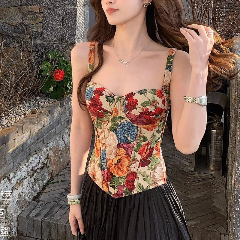 This elegant women's corset tank top features a sophisticated fishbone jacquard design that beautifully enhances the floral pattern. Crafted from a blend of spandex and high-quality fabrics, it offers a comfortable fit while providing a flattering waist-cinching effect. Ideal for pairing with both casual and formal outfits, this stylish piece adds a touch of elegance to any wardrobe.